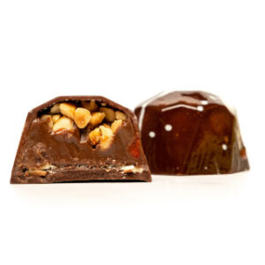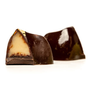 Chocolate al 60% de cacao con crema de avellanas, maní y queso parmesano.
