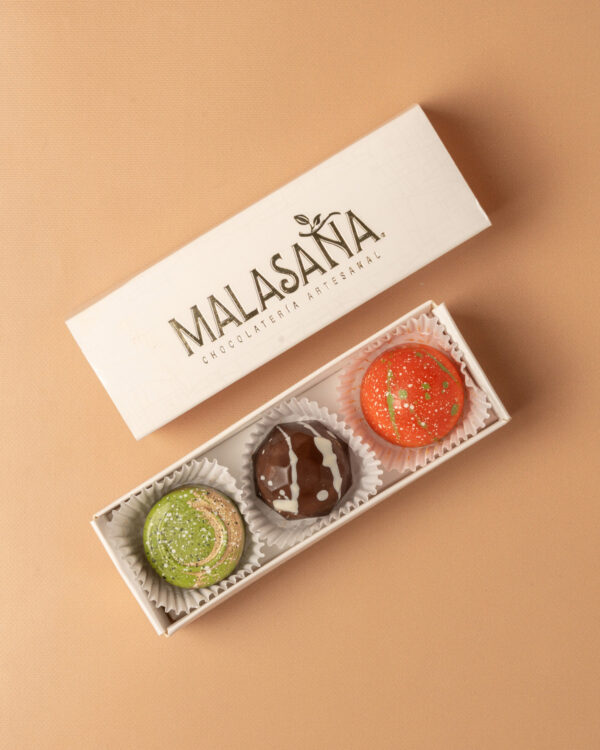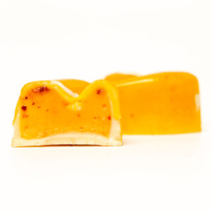 Chocolate al 55% de cacao sin azúcar con ganache de maracuyá.