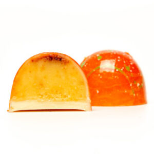 Chocolate al 60% de cacao con ganache naranja y piña.