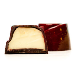 Chocolate al 60% de cacao con ganache de frutos rojos.
