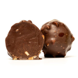 Trufa de ron y miel bañada en chocolate de 60% de cacao.