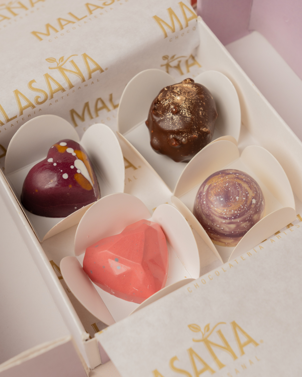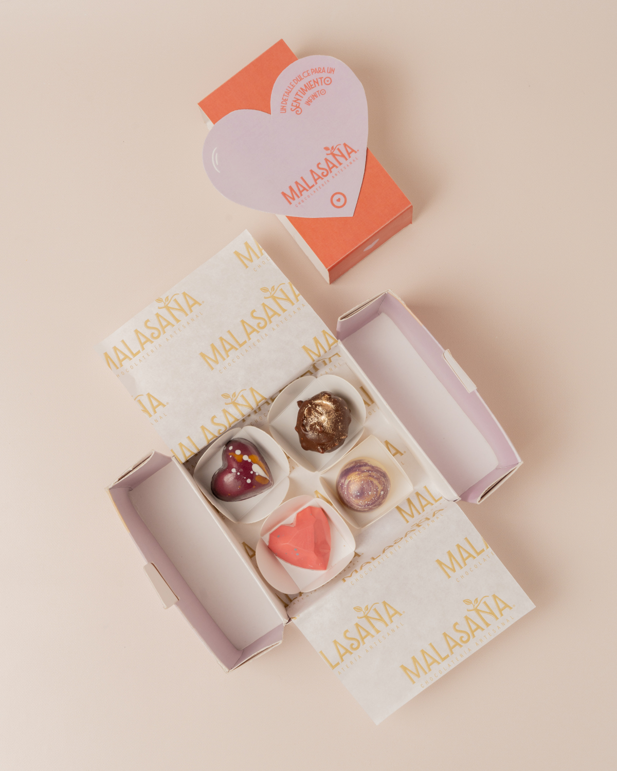 Caja especial edición amor de 4 ó 9 bombones, una presentación distinta para una persona especial.